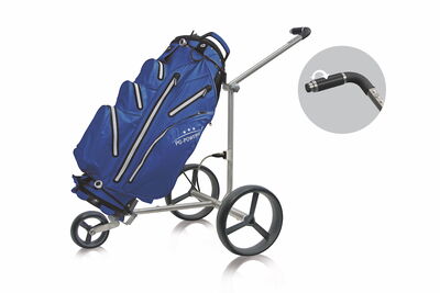 Der Kunde hat beim Challenger Steel die Wahl zwischen der neuesten Steuerung, dem innovativen Drehgriff Magic Power Control oder dem bewährten Geschwindigkeitsregler. Der Drehgriff Magic Power Controlfunktioniert wie bei einem Motorrad. Man kann vor- und rückwärts fahren, indem man den Griff nach dem Stopp einfach in die andere Richtung dreht - ohne zusätzliche Umschaltung. Und der große Vorteil: Der verstellbare Schirmhalter kann auch beim Magic Power Control am Griffende angebracht werden.
