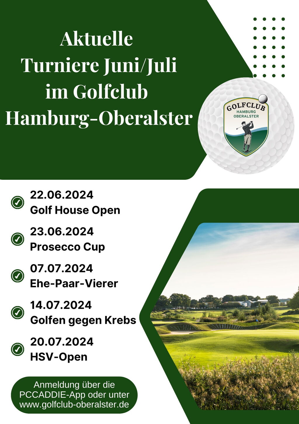 Im Juni und Juli erwarten Euch noch einige Turnier Highlights im GC Hamburg-Oberalster. Wir würden uns freuen mit Euch tolle Turniertage verbringen zu dürfen.