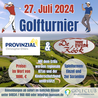 Am Samstag, den 27.07.2024, beginnt bei uns das Turnier Provinzial & De Köök mit einen Kanonenstart um 11:00 Uhr. Gespielt werden kann ein Einzel oder ein zweier Scramble. Das Startgeld beträgt 45,-€, inklusive Spende, Preise, Halfway und Essen.