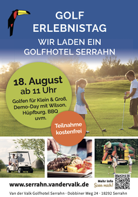 Unter dem Motto „Einfach vorbeikommen, kostenlos ausprobieren und Spaß haben“ lädt das Van der Valk Golfhotel Serrahn zum Familien-Golferlebnistag ein. Ab 11 Uhr ist jeder auf der Golfanlage im Herzen Mecklenburg-Vorpommerns herzlich Willkommen, den großen Sport mit dem kleinen weißen Ball auszuprobieren.