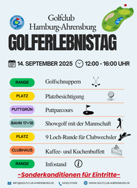 Am 14. September zwischen 12-16 Uhr veranstaltet der Golfclub Hamburg-Ahrensburg einen weiteren Golferlebnistag. Auch dieses Mal sollen alle Neugolfer vorbeikommen, die den Golfsport unverbindlich kennenlernen wollen. Dieses Mal stehen aber im besonderen Maße etablierte Golfer im Fokus.