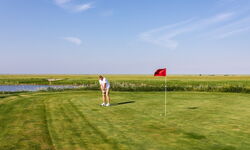 Priele und andere natürliche Wasserhindernisse und der fast ständig wehende Wind machen diesen Links-Course zu einem besonderen Erlebnis - unmittelbar am UNESCO Weltnaturerbe Wattenmeer und nur 5 km vom Nordsee-Heilbad Büsum entfernt.