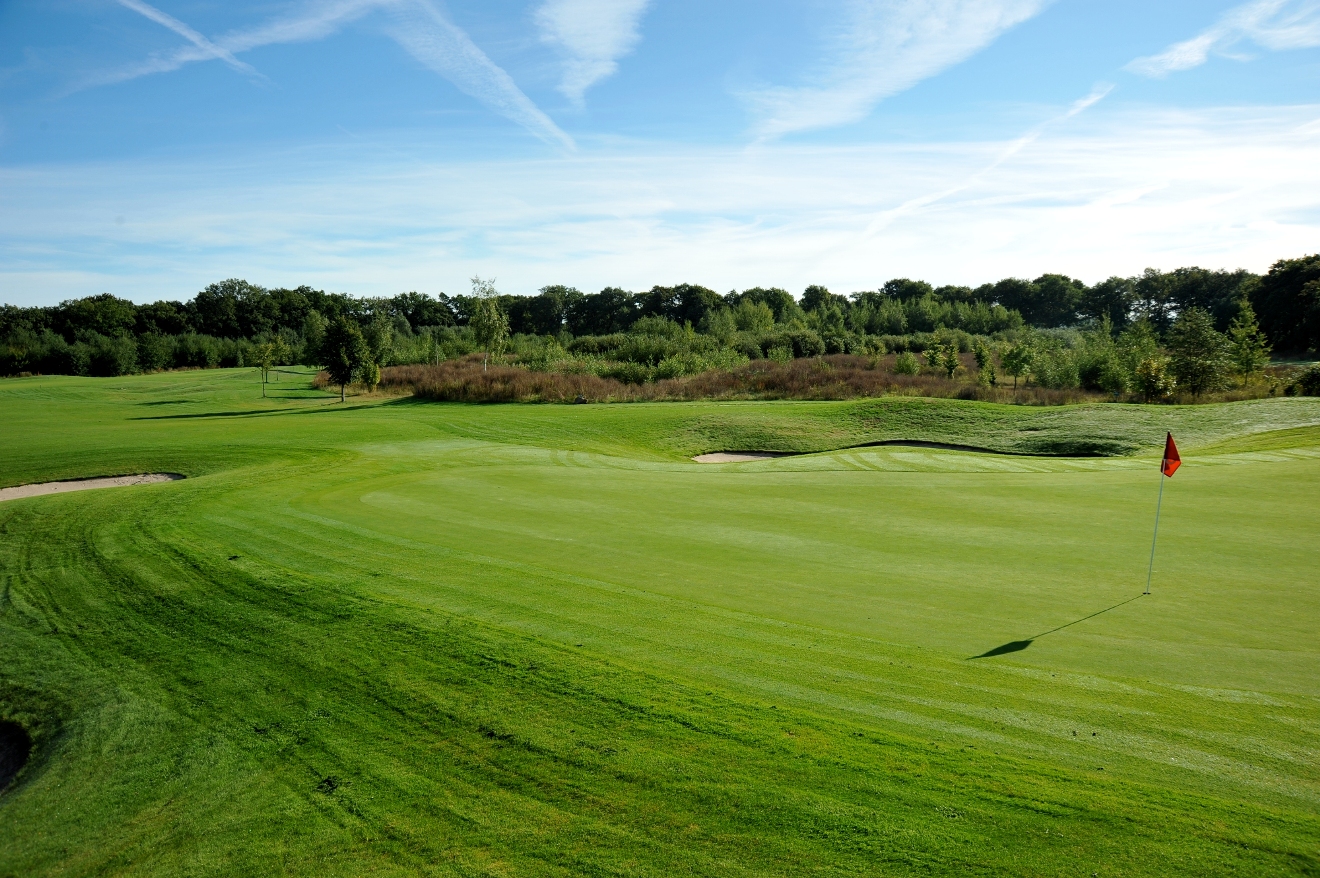 Die Bahnen der 18-Loch-Meisterschaftsanlage bieten mit fünf Abschlägen für Golfer aller Handicapklassen adäquate Schwierigkeitsgrade. Fast 3,5 ha Wasserfläche mit zahlreichen Neuanpflanzungen, 800 Bäume und 30.000 Sträucher geben dem Platz seinen unverwechselbaren Charakter. Dank guter Drainage ist der Platz auch dann bespielbar, wenn andere geschlossen werden müssen. Unser 9-Loch-Kurzplatz ist ideal zum Trainieren des kurzen Spiels. Die große, teils überdachte Driving-Range und die Übungsanlage sind optimale Voraussetzungen für Training und Entspannung nach Feierabend.