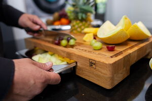 Das BLOODBOARD - keine halben Sachen, sondern 100% Qualität: Vom Holzproduzenten bis zum finalen Tropfen Öl – jedes Bloodboard ist durch und durch „Made in Germany“. Verarbeitet werden ausschließlich hochwertigste Hölzer und bester rostfreier Edelstahl. Und das mit jeder Menge Handarbeit: schleifen, fräsen, ölen und – als krönender Abschluss – der Brandstempel. slicestr for life!